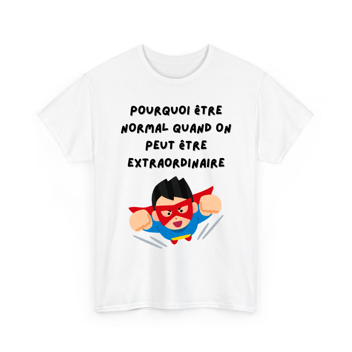Un t-shirt pour les âmes uniques, qui n’ont pas peur de se démarquer et de briller ! Parce que la normalité, c’est bien, mais l’extraordinaire, c’est encore mieux. Rappelle à tout le monde qu’être soi-même, c’est la clé pour être remarquable ! ✨
